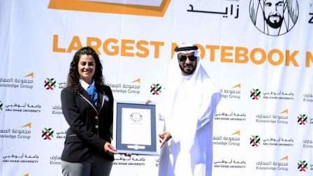 The Abu Dhabi University (ADU) and Knowledge Group (KG) entered the Guinness World Records for creating the largest notebook mosaic logo in celebration of the Year of Zayed.